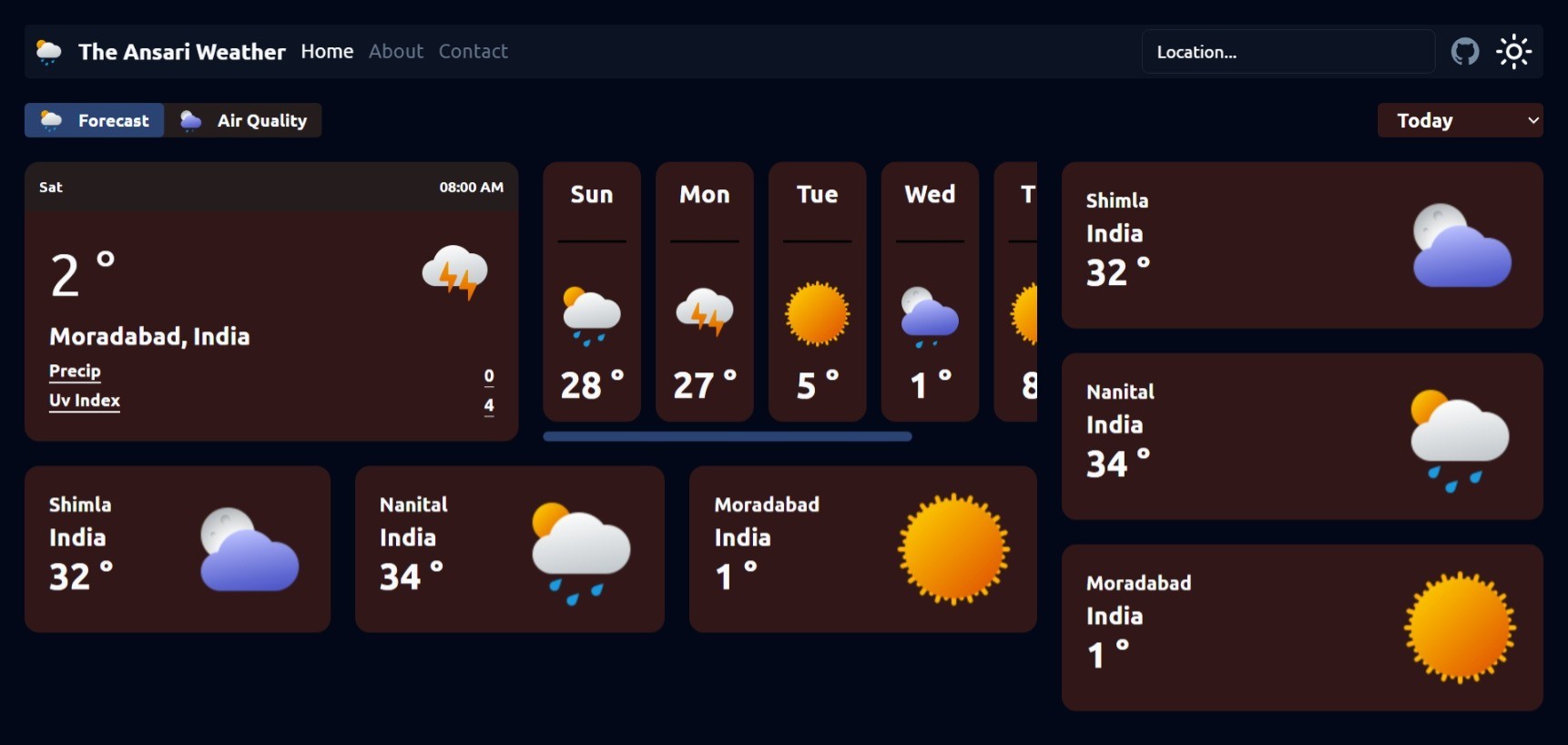 Project based on Next.js, Tailwind CSS & Shad CN, just a simple weather application.